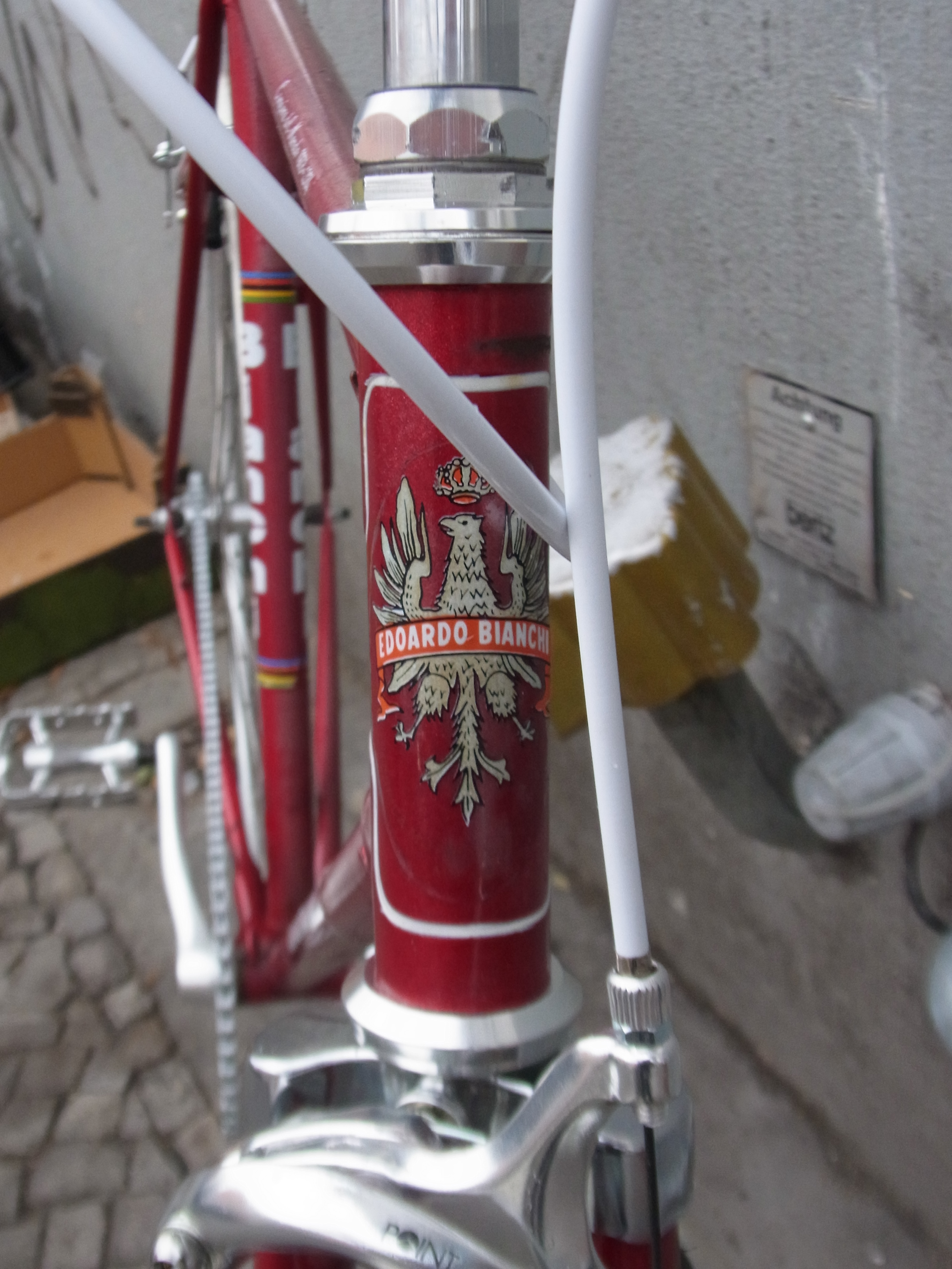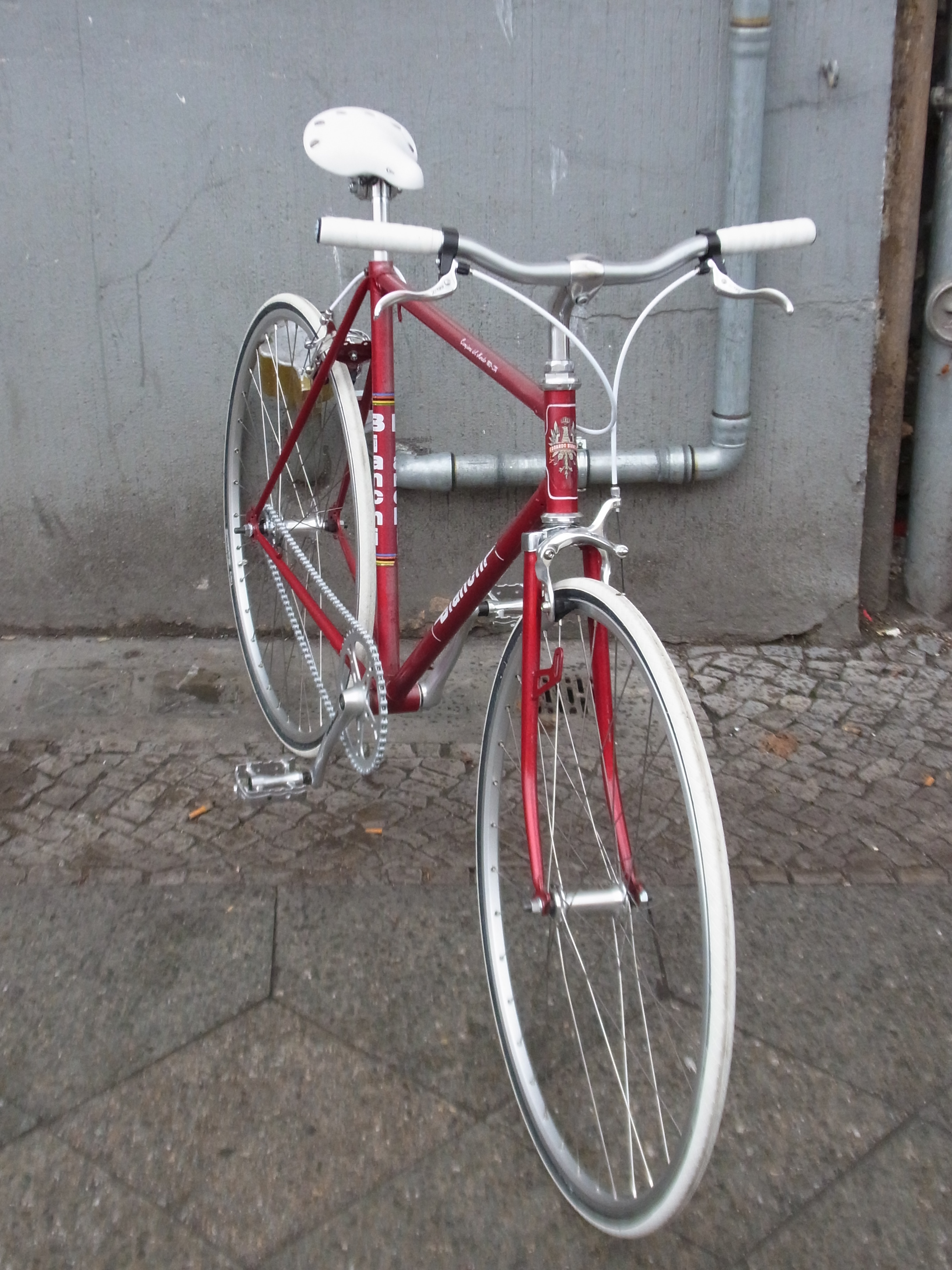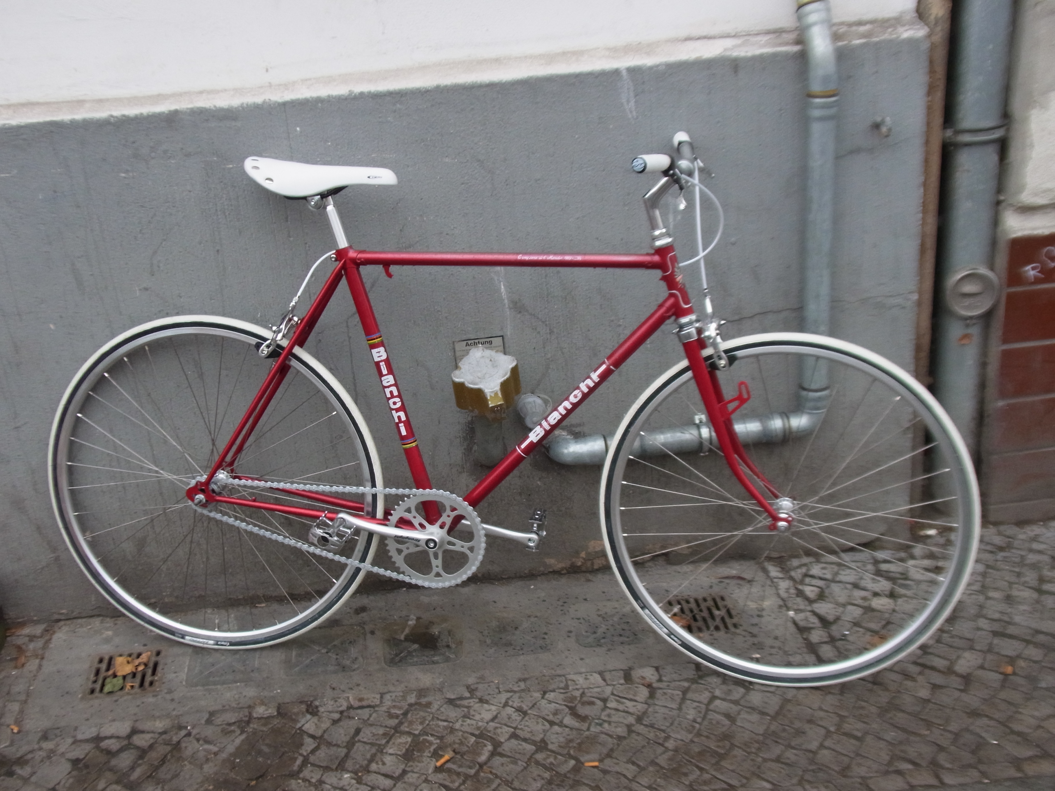 Aus einem “Campione del Mondo 1973-1974” Tourensportrahmen von Bianchi wurde dieser elegante, und zugleich bezahlbare Singlespeeder. Die erhöhte Sitzposition sorgt für mehr Verkehrsübersicht und weniger Ermüdung in den Armen. Der Verzicht auf eine Gangschaltung unterstreicht das reduzierte Design und hält die Wartungskosten niedrig.