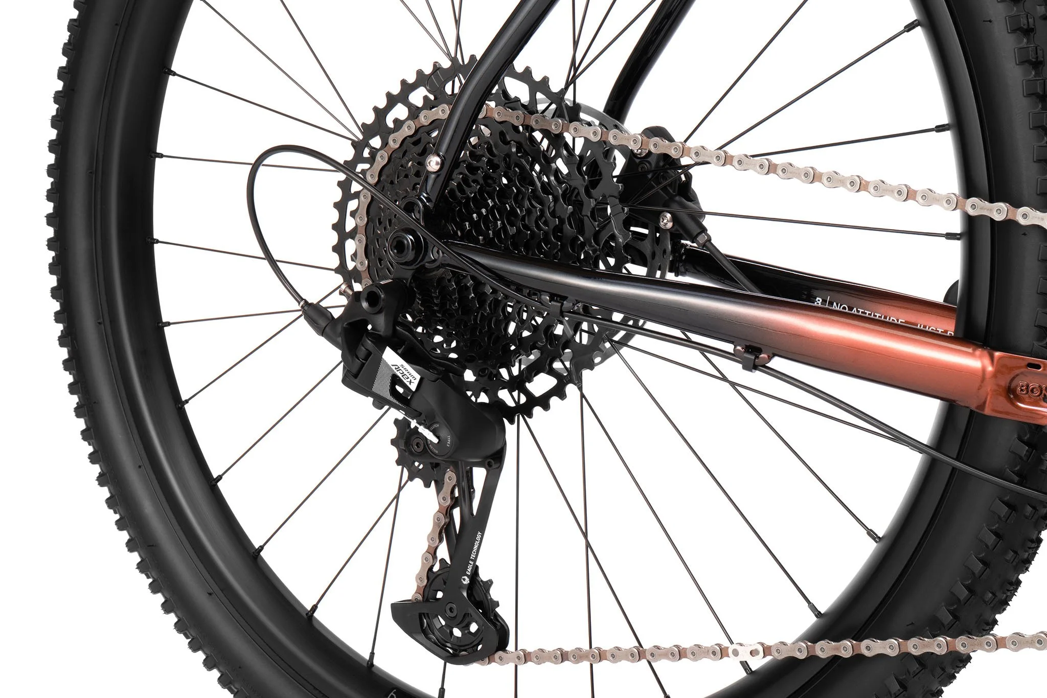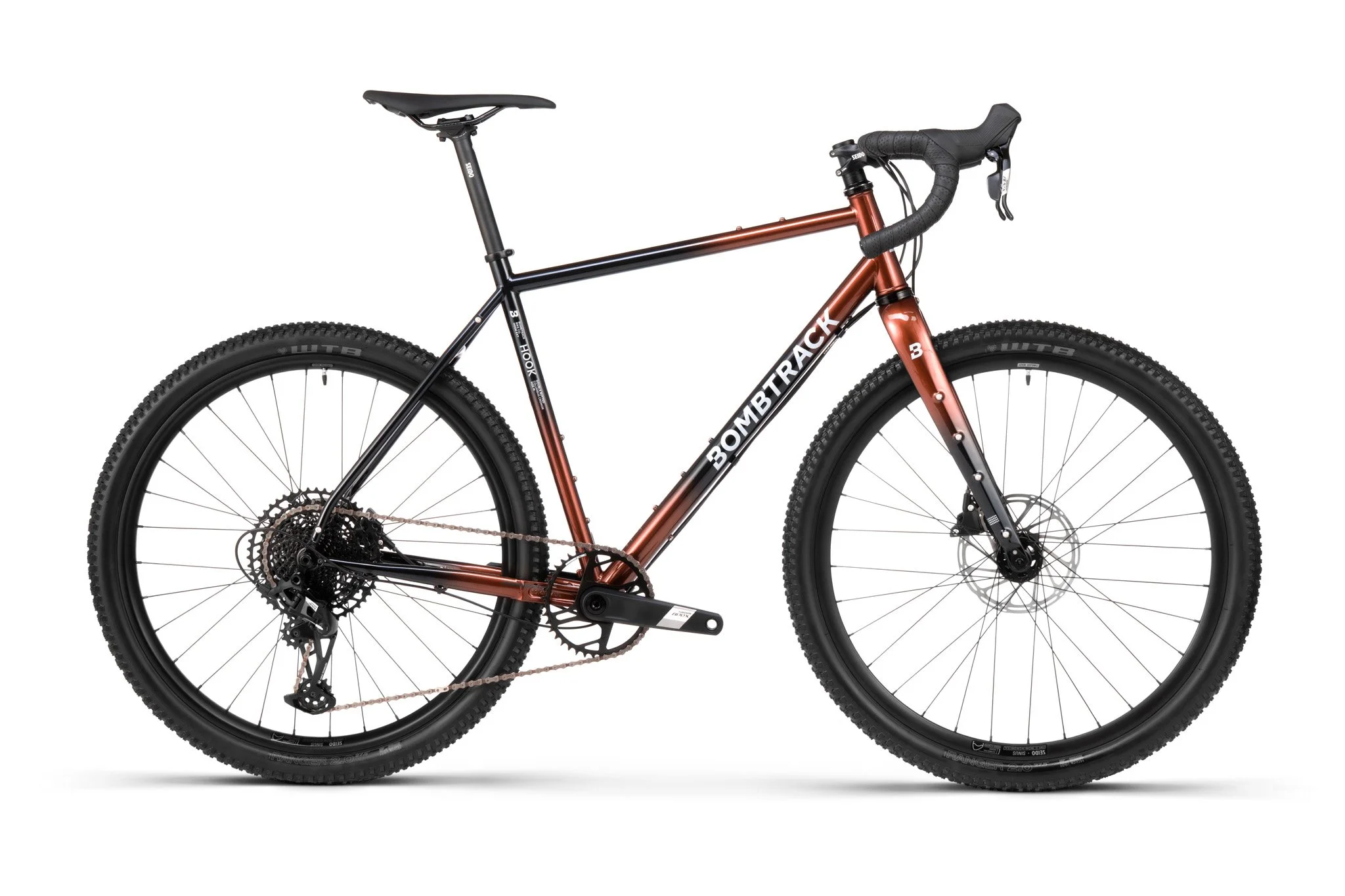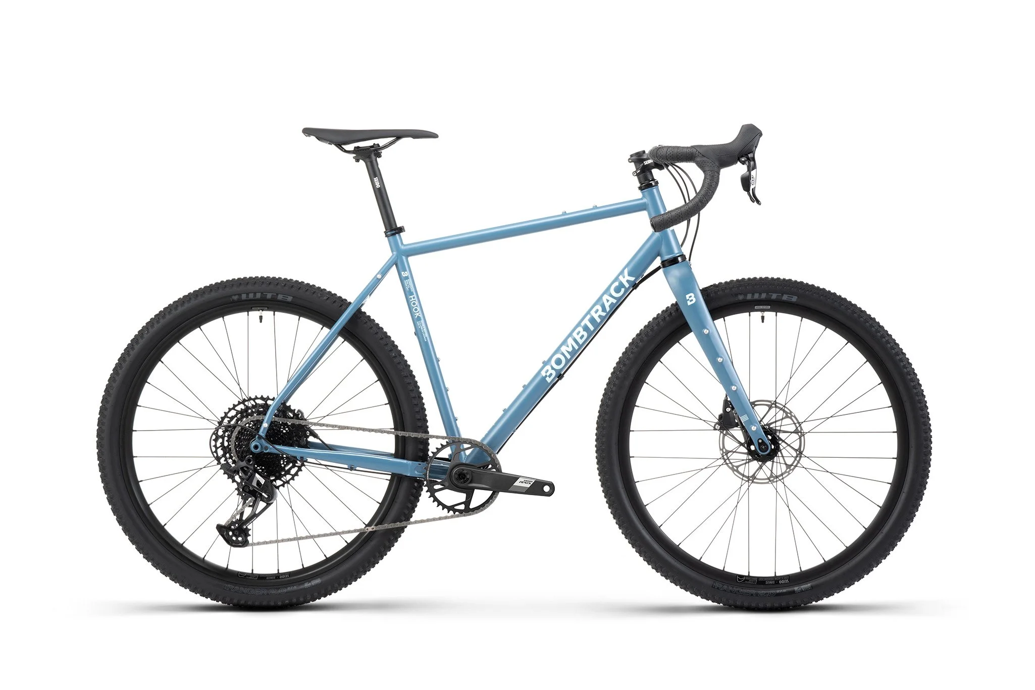 Das Hook EXT Apex Eagle bietet ein geschmeidiges Fahrgefühl, ist robust und extrem langlebig. Es ist mit allen nötigen Befestigungsmöglichkeiten für Gepäckträger, Flaschenhalter und was du sonst noch brauchst ausgestattet. Die WTB Ranger Bereifung bietet hervorragenden Grip auf dem Trail und sorgt für Fahrspaß abseits befestigter Straßen. Dank der SRAM Apex Eagle 1x12 Schaltung sind Schalten und Bremsen präzise und einfach, und die große Übersetzungsbandbreite meistert jede Herausforderung – von steilen Anstiegen bis hin zu schnellen Geraden. Die Seido MGV Carbon-Gabel bietet zahlreiche Befestigungspunkte und Platz für breite Reifen sowie elegant verlegte Kabel für eine aufgeräumte Optik. Kurz gesagt: Das EXT ist bereit für jedes Abenteuer – egal ob kurze Spritztour durch die Nachbarschaft oder Offroad-Wochenende.