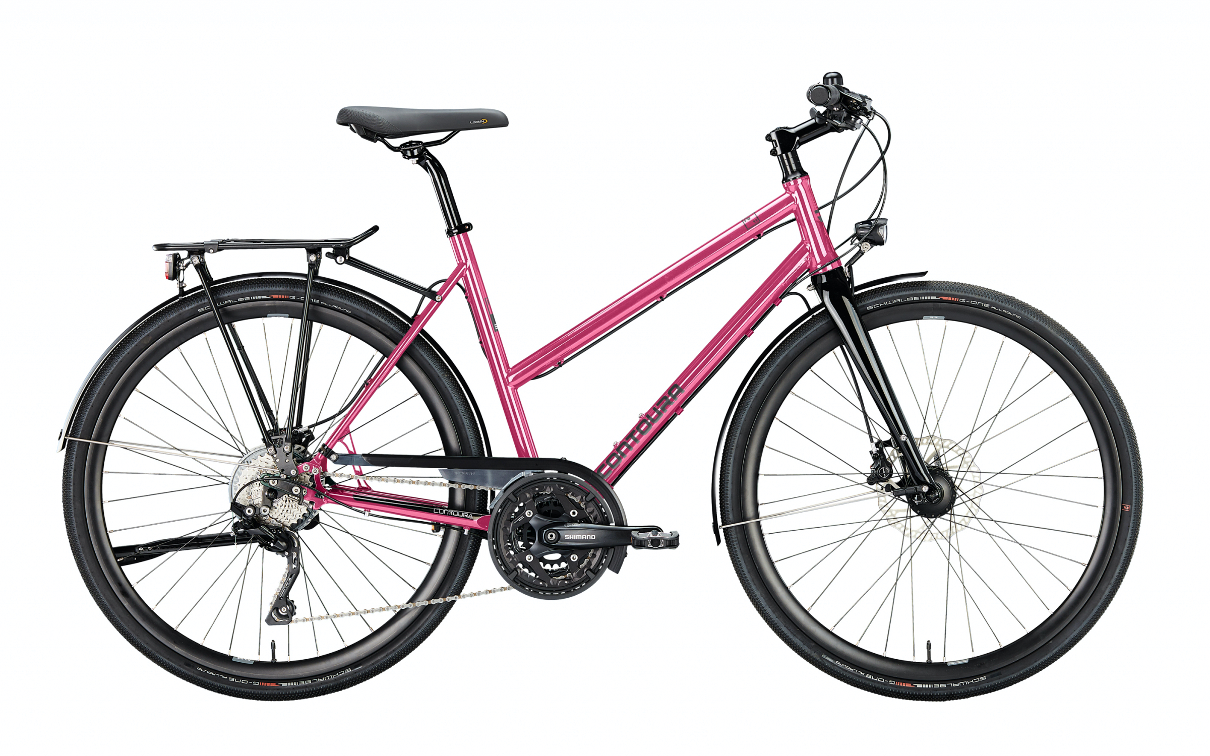 Mit den fein profilierten G-One Reifen zeigt das Fe-11 schon an, dass es sich gleichermaßen auf Asphalt wie auf unbefestigten Wegen wohlfühlt. Auf Asphaltpisten überzeugt der souveräne Geradeauslauf fürs sichere Fahrverhalten, auf Wald- und Feldwegen punktet das FE-11 mit seiner Wendigkeit. Auf allen Wegen gefällt der verwindungssteife Stahlrahmen mit seinen modernen Features wie dem konischen Steuerrohr und dem filigranen Ausfallende, das eine der wählbaren Kettenschaltungen mit – ebenfalls tourentauglicher – Übersetzung aufnimmt.
